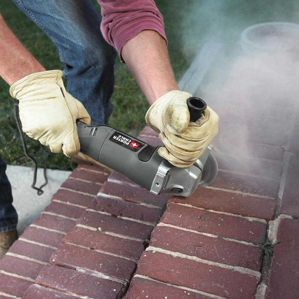 This PORTER-CABLE corded angle grinder makes quick work of cutting rebar and concrete, removing paint and rust and sharpening blades. Its 7.5-amp motor delivers 10,000-RPM to power through these tasks with ease. The trigger switch provides hassle-free operation, and the spindle lock allows for quick and easy accessory changes. The 3-position soft-grip side handle provides comfortable convenience and better control, and the cast-metal gear case increases durability to extend the lifespan of this grinder.