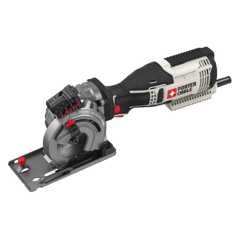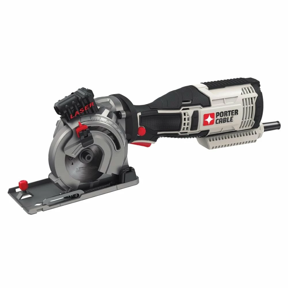 PCE380 5.5 Amp compact circular saw provides power through a wide range of jobsite applications. Included with the circular saw are three blades providing the user the ability to cut wood, tile or metal. The laser indicator on the circular saw provides precise cutting while the spindle lock and depth adjustments allows for quick adjustments.