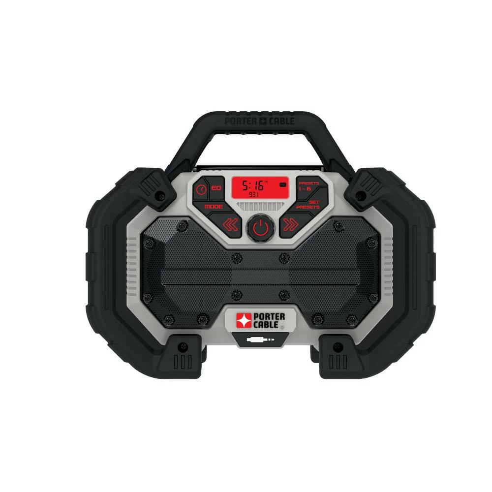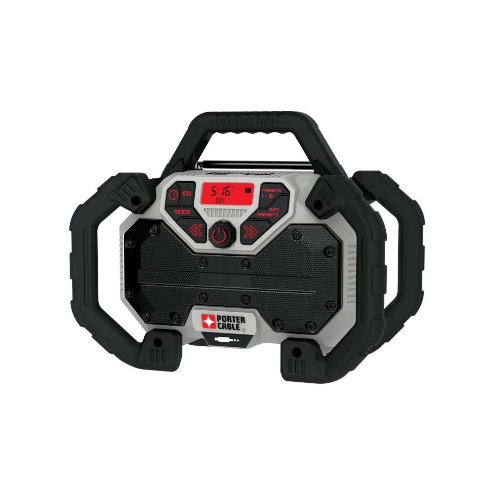 Add the PORTER-CABLE corded/cordless jobsite radio to your 20-volt MAX system. Listen to the radio or stream music and audio content by plugging your device into the auxiliary port. The radio charges any PORTER-CABLE 20-volt MAX battery when the radio is plugged in.