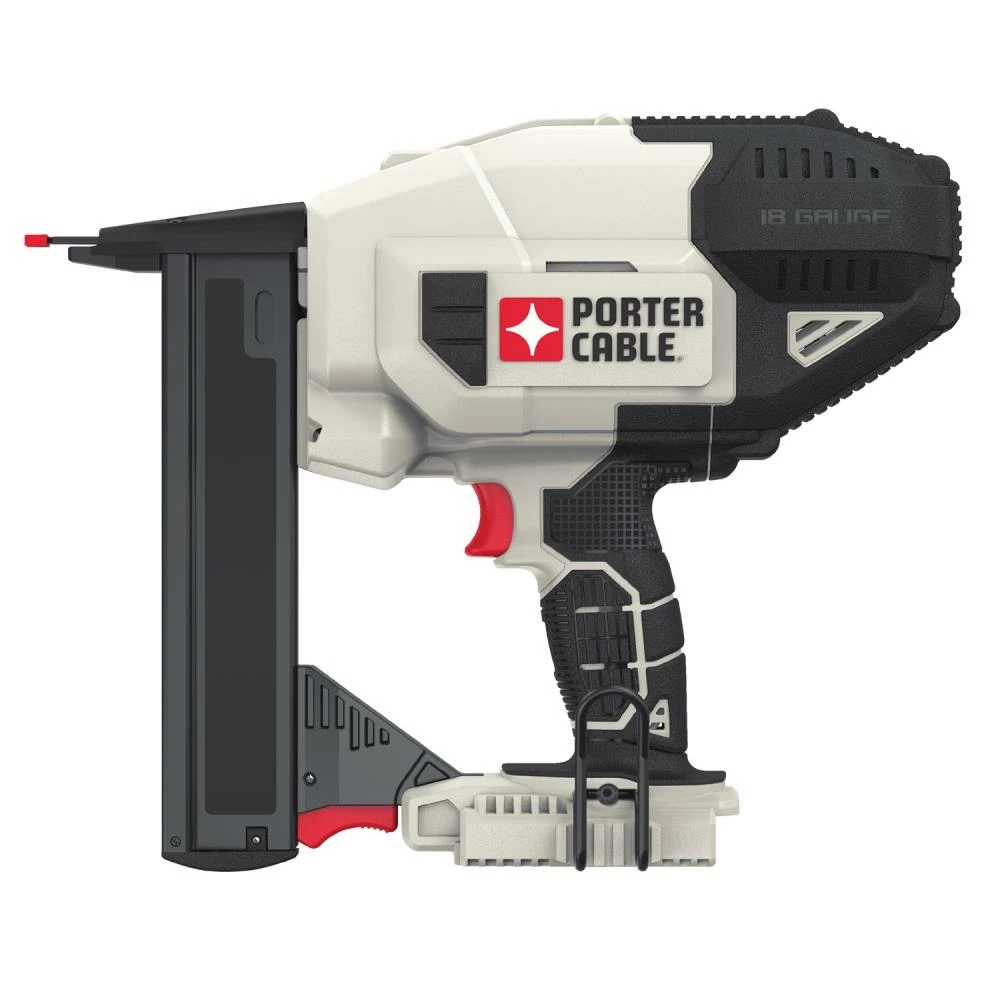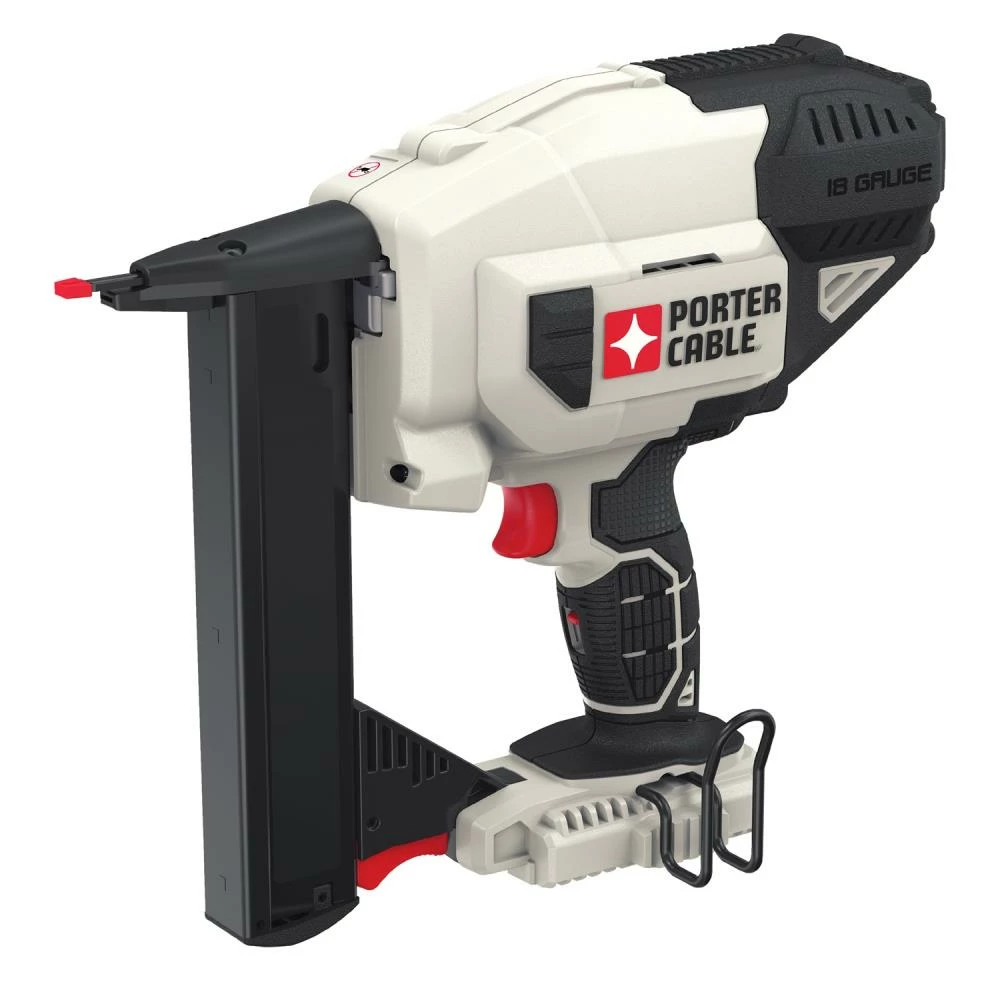 The PORTER-CABLE PCC791B 20V MAX lithium 18 gauge narrow crown stapler bare tool is 100% battery powered tool which eliminates need for compressor, hose or costly gas cartridges. This stapler’s motor design provides consistent firing power into various materials and climate conditions. It offers multiple tool free settings that provide increased productivity and user safety. This unit’s lightweight and optimal center of gravity provide user comfort in multiple positions and helps by reducing user fatigue. It also has multi functional dual LED lights that are great for workspace illumination and error indication. Other features include and integrated belt hook, no mar pad on tip, trigger lock off, and bottom loading magazine. This is a bare tool item – battery sold separately.