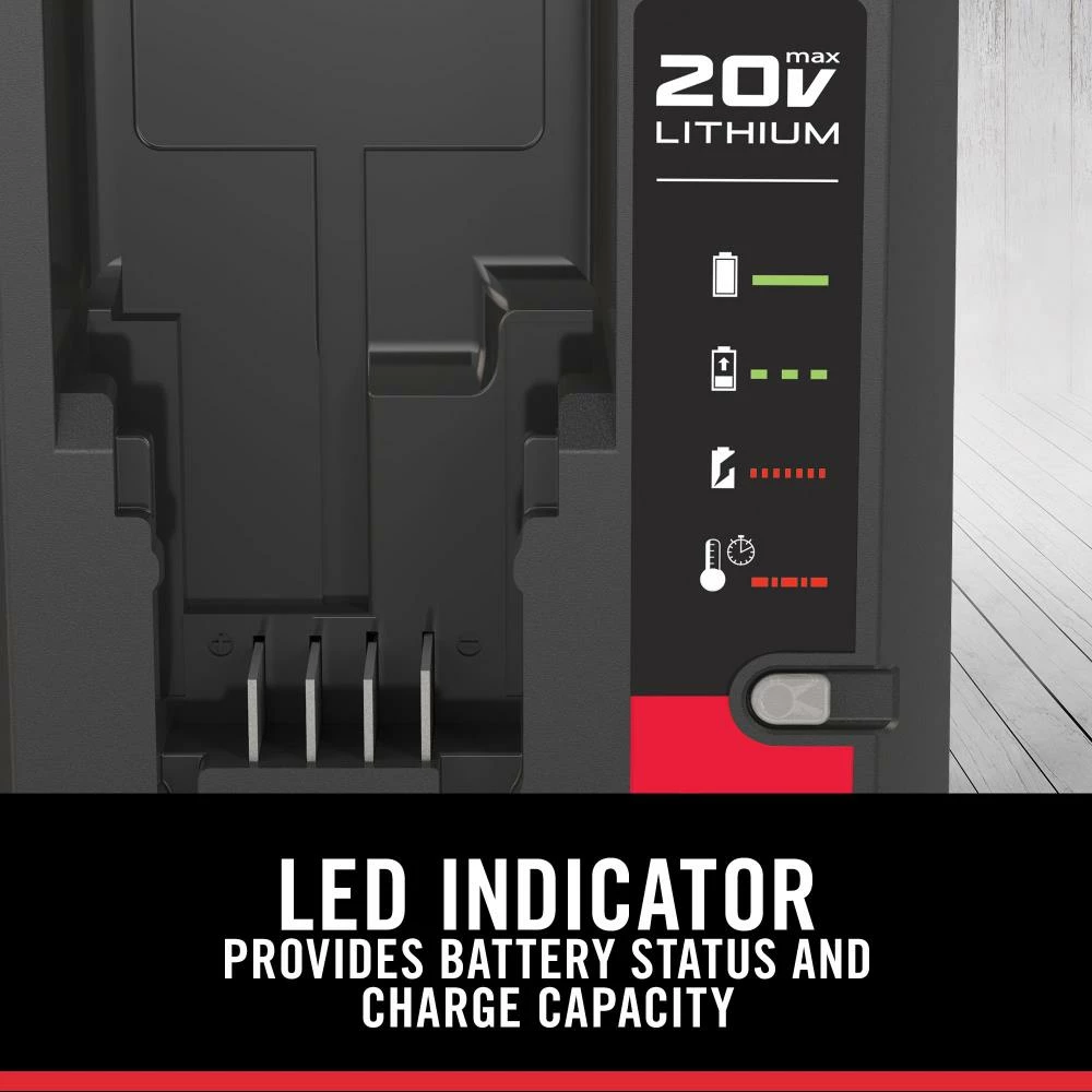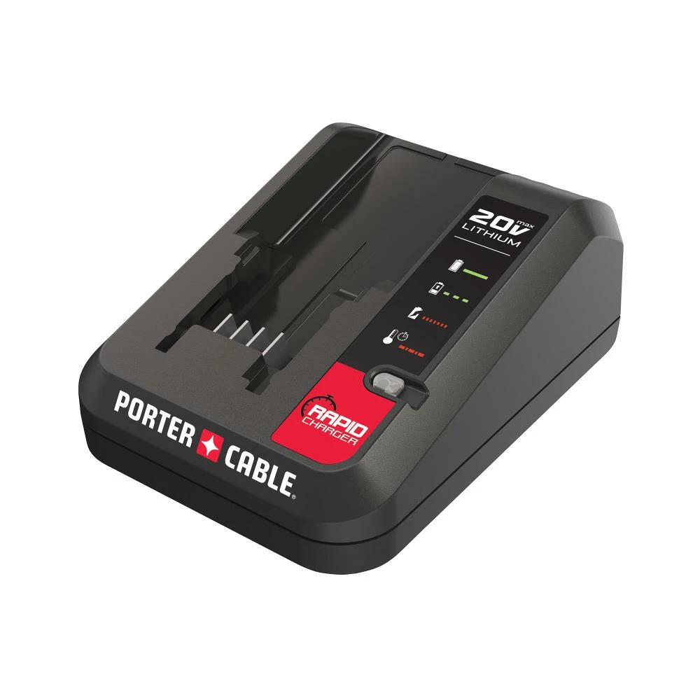 Charge all PORTER-CABLE 20V MAX batteries with this 20V MAX Battery Charger. The charger features a rapid 2 Amp charge rate with overload protection to safeguard cells against damage. Keep aware of your battery state of charge with an LED indicator that conveniently shows remaining charge capacity as you work.
