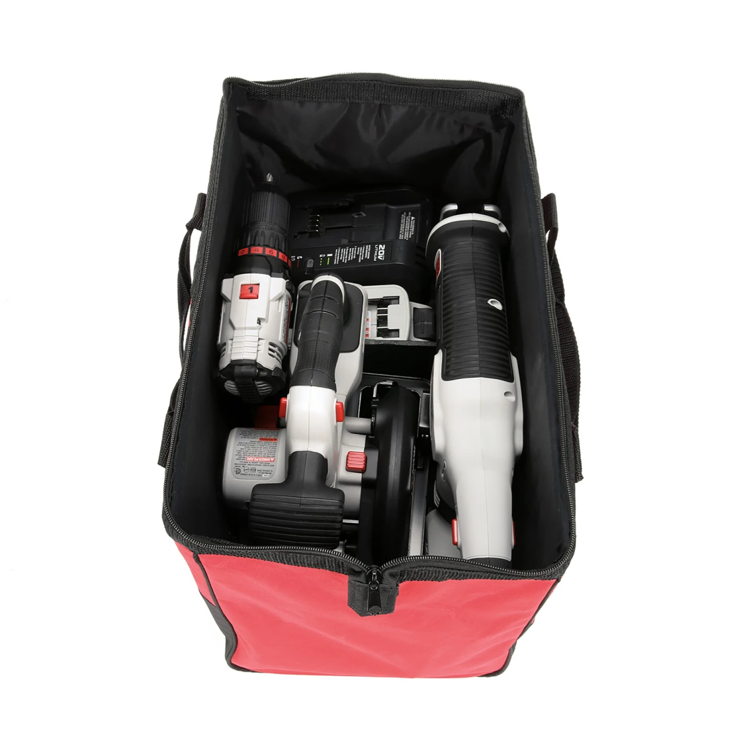 Porter Cable’s PCCK616L4 20V MAX Lithium-Ion 4-Tool Combo Kit comes with a drill driver, reciprocating saw, circular saw, and LED work light. Complete with two batteries and a charger, this set is powered and ready to go for all your DIY construction tasks.