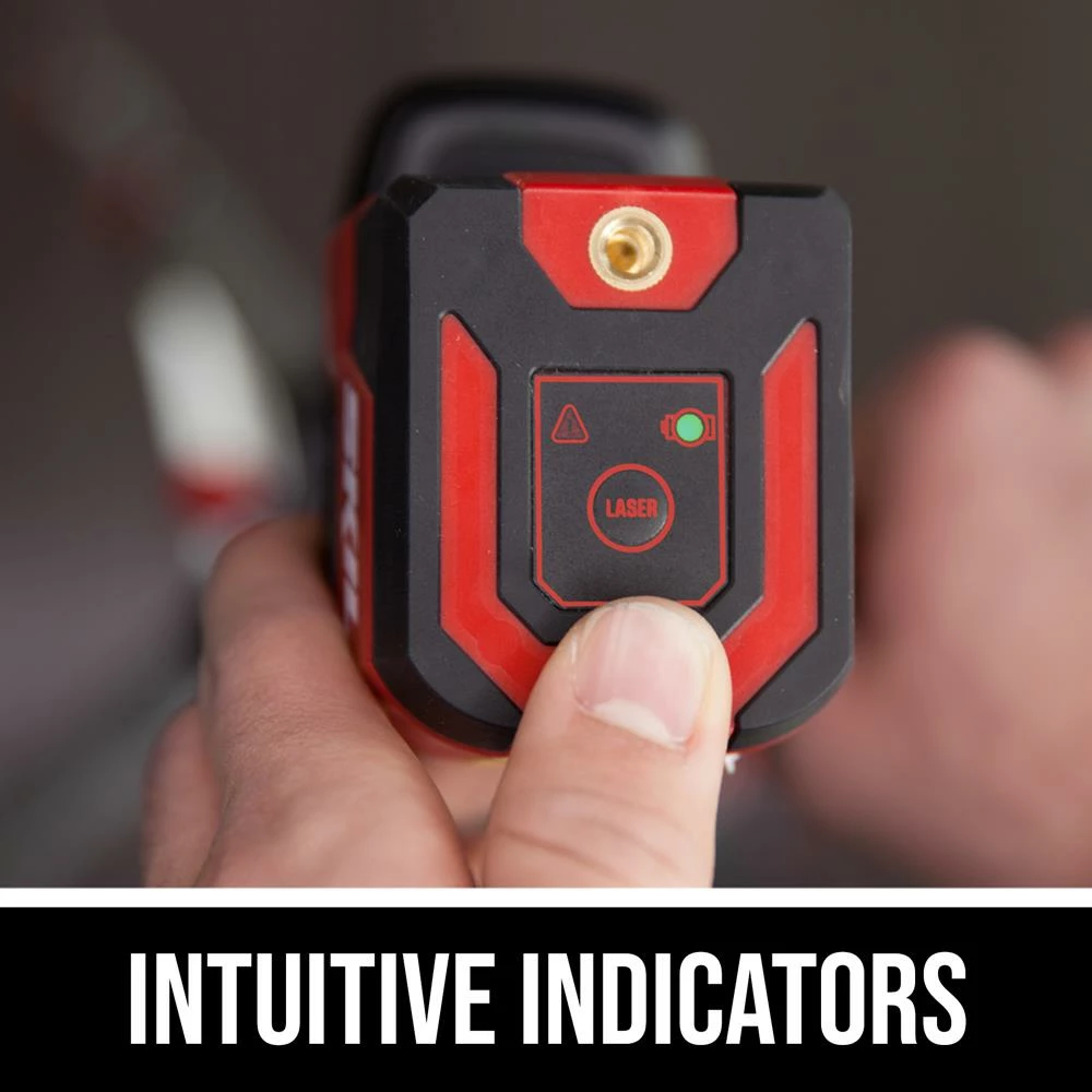 - Intuitive indicators show you when your lines aren’t level and how much battery life is left