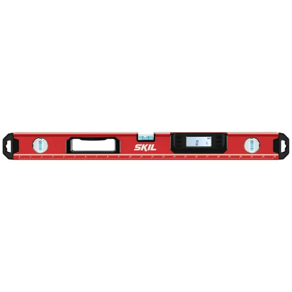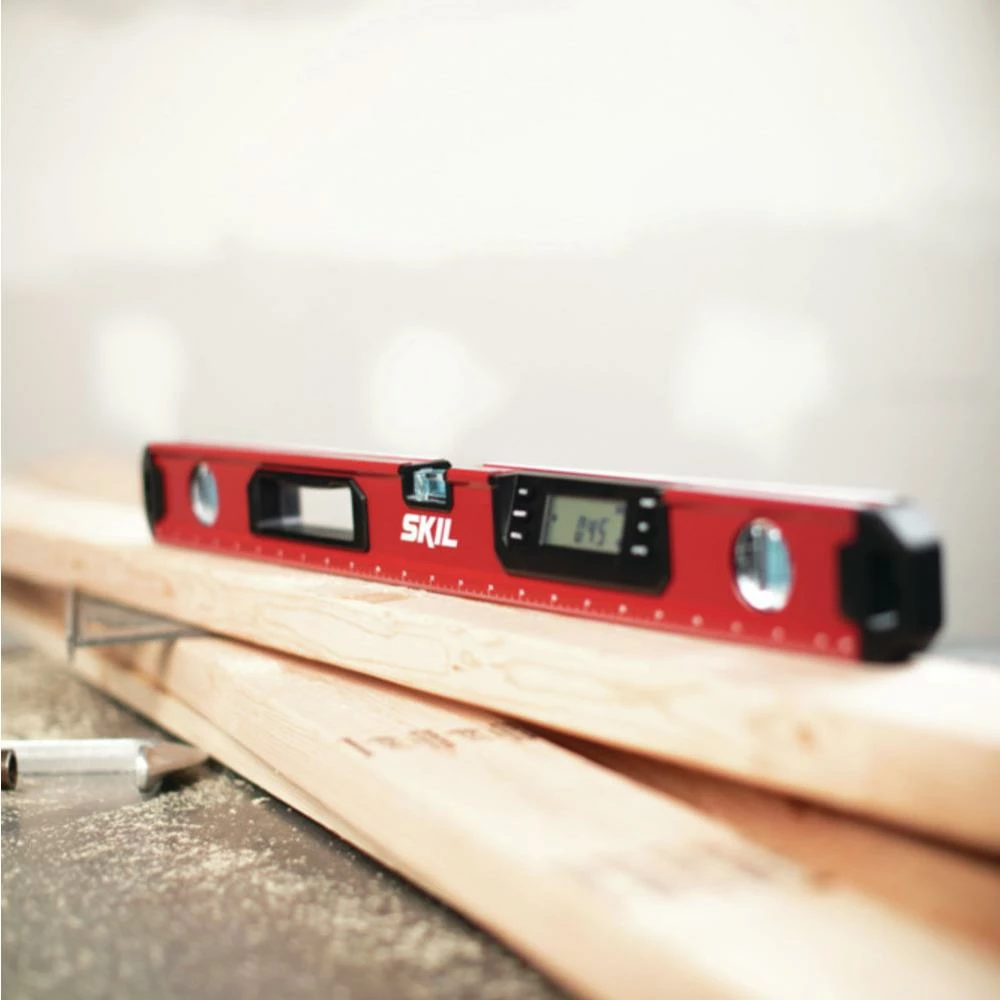 The SKIL 24-inch digital level tool is easy to use and packed with features. Its longer length makes it ideal for leveling across several pictures, putting up wider shelves, installing cabinets, and lots of other DIY projects around the house. The high-contrast blue vials are highly accurate and easy to see. The digital LCD screen is backlit, so you can read it from any perspective, and adjusts to the correct orientation however you hold it.