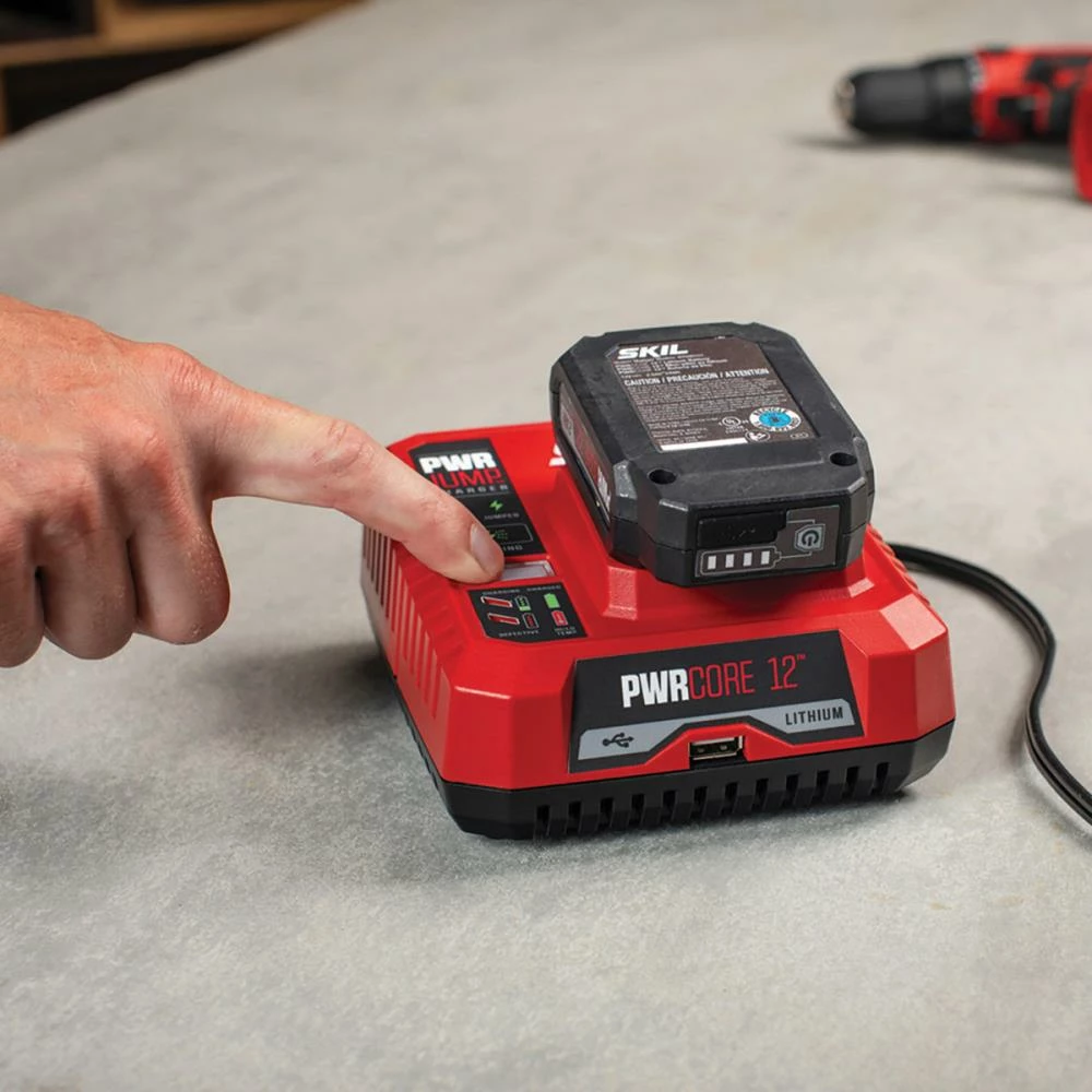 SKIL’s PWRJump™ innovation charges the battery up to 25% in just 5 minutes, providing enough power to a drill to insert up to 100 screws (based on a 2.0Ah battery). Just press the PWRJump button on the charger and the LED lights will indicate when your battery is jumped.