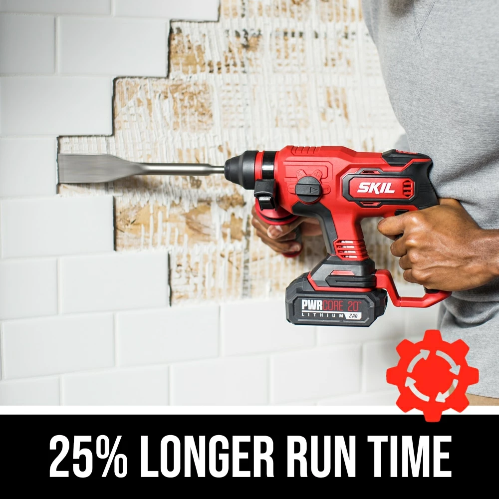 4-Mode Rotary Hammer Drill. The digital, brushless motor provides the power needed to quickly hammer through tough materials like brick, stucco, and concrete with 0-1400 RPM and 0-4500 IPM. Seamless transitions between hammer drill, drill, chisel, and chisel alignment modes reduce time and increase efficiency, while the PWR CORE 20™ Lithium Battery and Automatic PWR JUMP™ Charger keep your SDS hammer drill powered up longer.