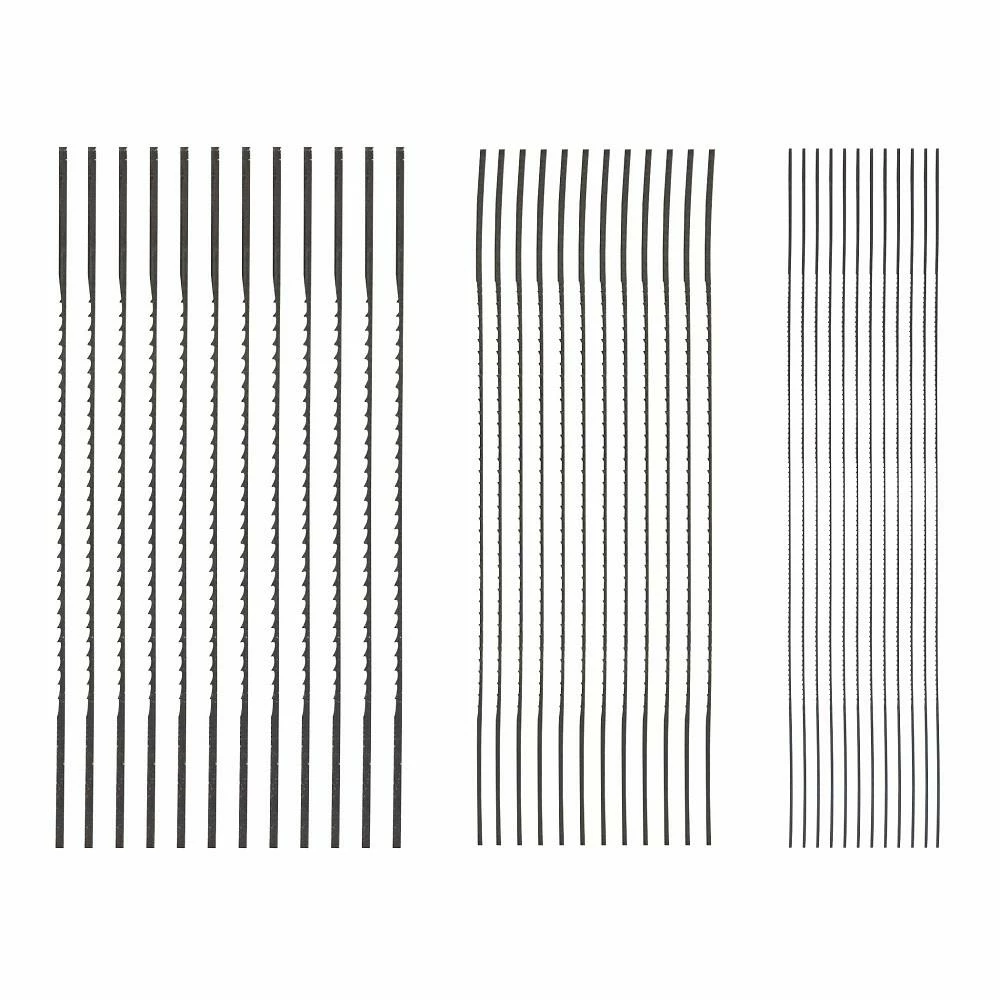 SKIL scroll blades are designed for the professional craftsman who needs sharp, long lasting blades. These blades are precision sharpened for easy cutting of fine, intricate shapes. Offered in a variety of TPI and widths, these blades are recommended for cutting most woods, plastics and non ferrous metals. SKIL carries both pinned and plain style to meet the user’s needs in whatever type of scroll saw they might have.